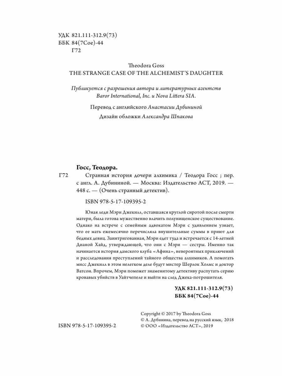 Странная история дочери алхимика (Дубинина А. (переводчик), Госс Теодора); АСТ, 2018