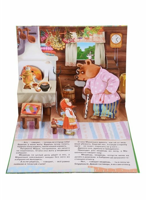 Открыв эту книгу, ребенок познакомится с русской народной сказкой про девочку Машу, которой удалось обхитрить самого хозяина леса - медведя. На каждом развороте раскрываются объемные панорамные конструкции, и любимые персонажи оживают, а книжка превращается для малыша в настоящий театр!