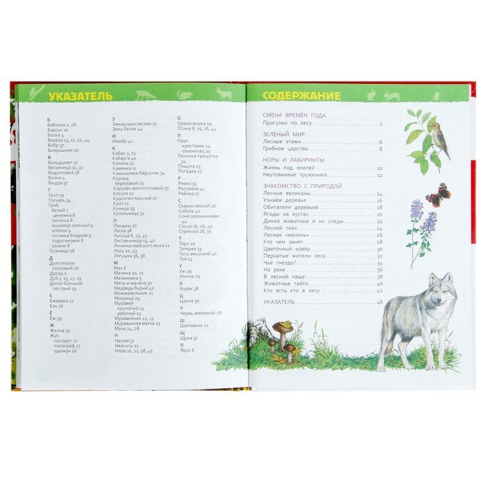 Книга серии «Энциклопедия для детского сада» познакомит ребенка с обитателями леса. Он узнает, как меняется природа по временам года, сколько в лесу "этажей", кто роет норы, а кто вьет гнезда, что за странные шарики налипают на листочки и почему грибы называют лисичками. Ему будет интересно рассмотреть следы кабана, волка, лисицы и древесные ходы жука-короеда. В увлекательной форме книга расскажет о том, кто есть кто в лесу.