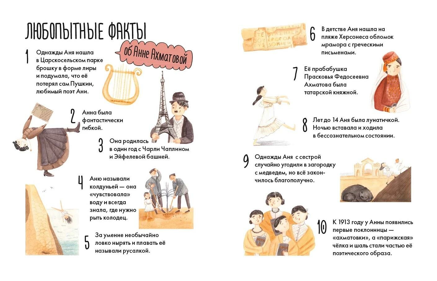 Анна Андреевна Ахматова — знаменитый поэт, литературовед и переводчица, яркая фигура русской литературы XX века. Она стала классиком еще в 1920-е годы, но впоследствии её перестали печатать, а семья Ахматовой подверглась репрессиям. Трудности никогда не становились преградой на ее творческом пути. Как бы порой ни приходилось тяжело, Ахматова никогда не жаловалась на судьбу, любила жизнь и продолжала писать. Эта вдохновляющая книга привлечет интерес юных читателей к русской классике и истории, а также научит:- не бояться творить;- не бросать начатое, если вас не оценили сразу;- заботиться о семье, ценить друзей и помогать окружающим