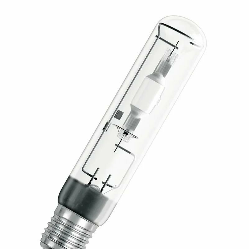 Металлогалогенная лампа OSRAM HQI T 400W/N E40 мощностью 400 Вт. Кварцевая лампа высокого давления с колбой цилиндрической формы из тугоплавкого стекла. Уменьшает старение пластиковых деталей светильника. Применяется для наружного освещения, а также освещения офисных, торговых, спортивных, промышленных помещений с высокими потолками.