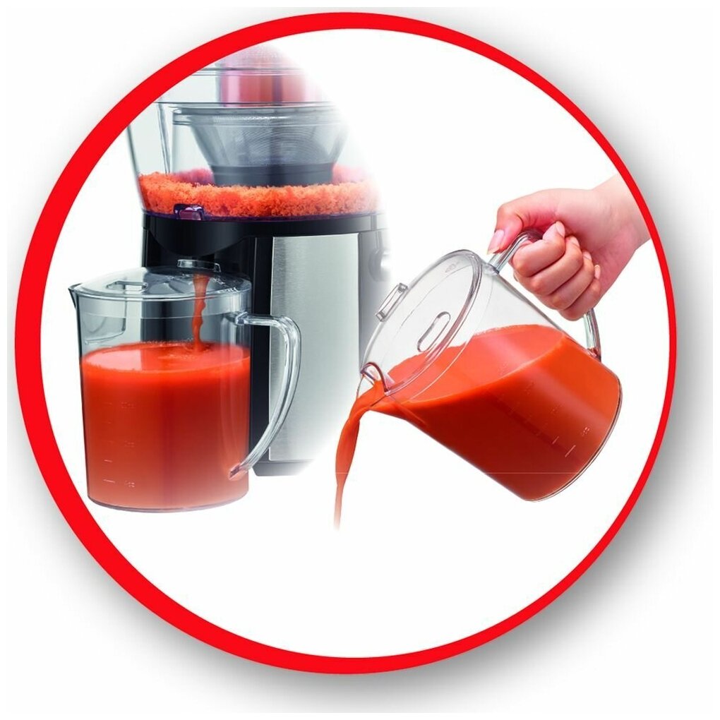 Электрическая соковыжималка Moulinex JU550 - отличный способ приобщиться к здоровому образу жизни. Теперь собственноручно вы сможете делать восхитительные свежевыжатые соки из разных фруктов и овощей. Прочная и надежная конструкция легка в управлении: необходимо лишь выбрать подходящую скорость для переработки мягких и твердых ингредиентов, для загрузки которых предусмотрена горловина шириной 75 мм.