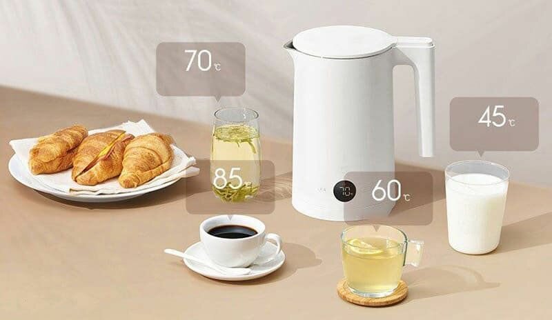 Умный чайник Xiaomi Mi Smart Kettle – незаменимый помощник на кухне. С этим продвинутым гаджетом жизнь станет еще приятнее. Mi-чайник умеет поддерживать температуру воды, назначенную владельцем, для наслаждения любимым напитком. Степень нагрева можно назначить через фирменное приложение MiHome. Связь со смартфоном осуществляется по Bluetooth. За прибором легко ухаживать, поскольку в его конструкции нет труднодоступных зон. Обжечься о чайник нельзя из-за толстого слоя пластика, покрывающего колбу.