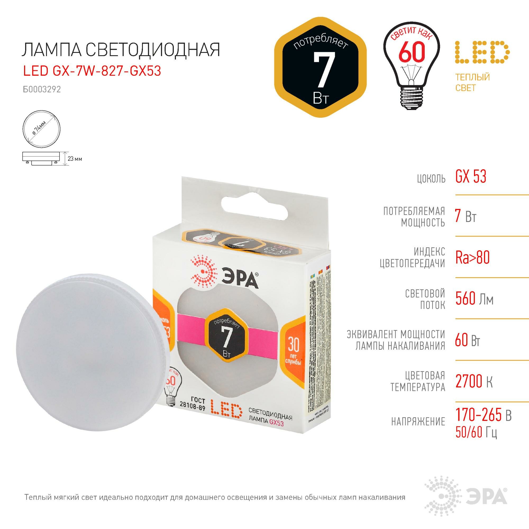 Лампа светодиодная ЭРА Led smd gx-7-827-gx53
