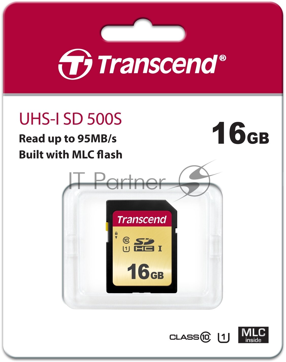 Карта памяти SDHC 16GB Transcend Class 10 U1 500S MLC (TS16GSDC500S)