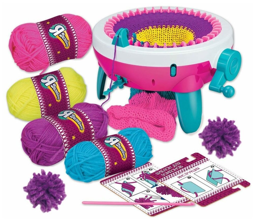 | Комплектация | вязальная машинка, иголка, крючок, пряжа 4 шт., шаблон для помпонов 2 шт., инструкция |