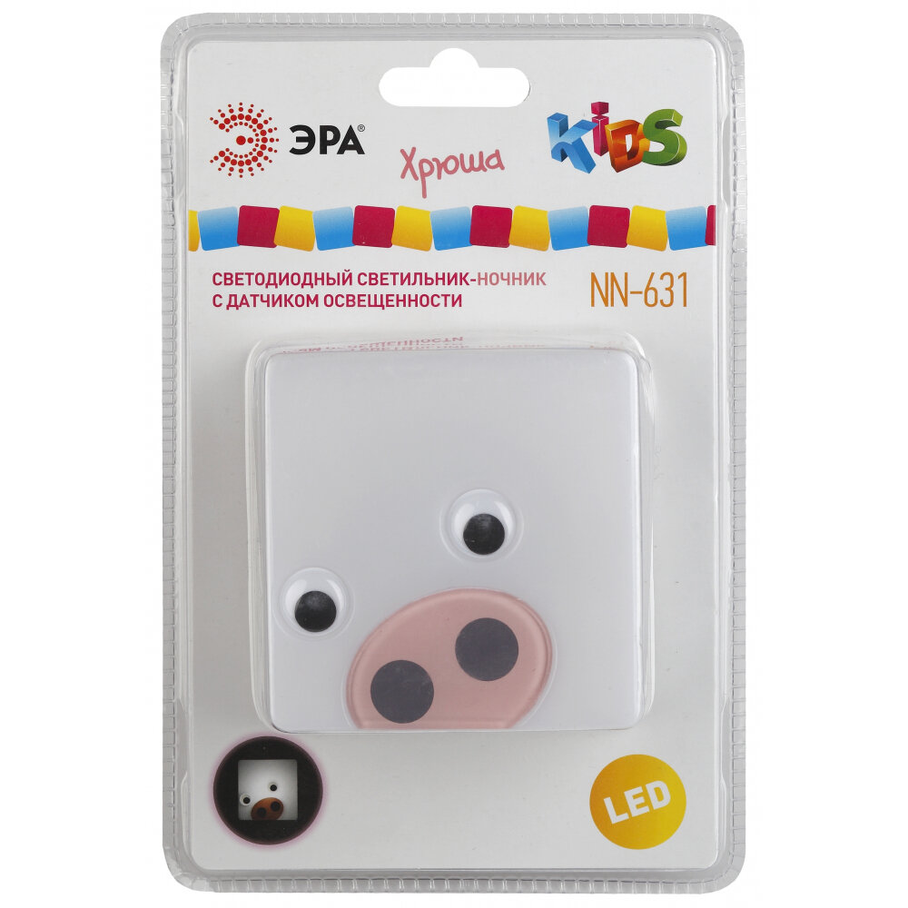 Эра Б0015242 Ночник «ЭРА» «Хрюша» розового цвета не только создаст уютный свет в темное время суток, но и поможет вашему ребенку спокойно спать, не боясь темноты. Он оснащен датчиком освещения, автоматически включающимся в темноте. Кроме того, благодаря съемному пластиковому плафону в виде «поросенка», данную модель можно использовать в качестве декоративного светильника.