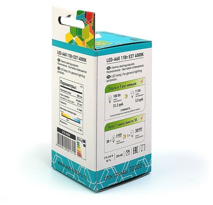 Обзор светодиодной лампы ASD A60 LED 15Вт