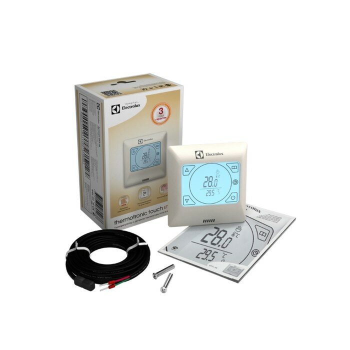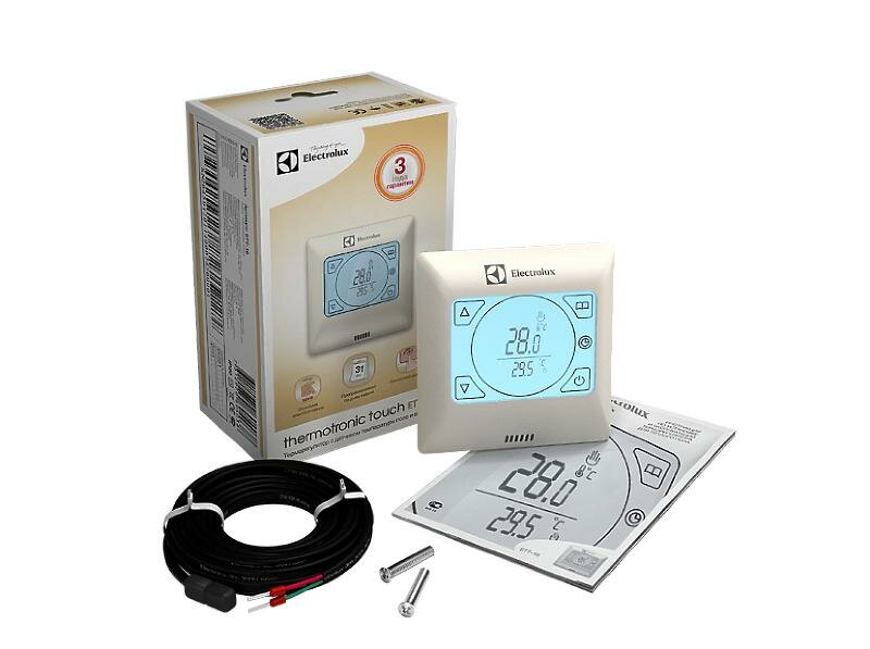 | Прочие особенности и свойства | Терморегулятор Electrolux Thermotronic Touch (ETT-16) это электронный программатор с сенсорным экраном, применяется специально для управления температурой пола. Программатор для управления теплым полом Electrolux Thermotronic Touch (ETT-16) можно программировать в течении суток выставляя 6 различный режимов температур. Electrolux Thermotronic ETT-16 (Touch) терморегулятор для теплого полапрограммируемый помощник для вас с интуитивным интерфесом, который мгновенно реагирует на прикосновение пользователя. |