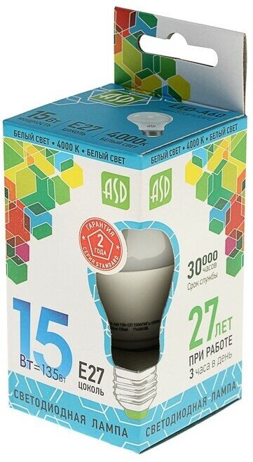 Лампа светодиодная Asd Led-a60-standard 15Вт 160-260В Е27 4000К