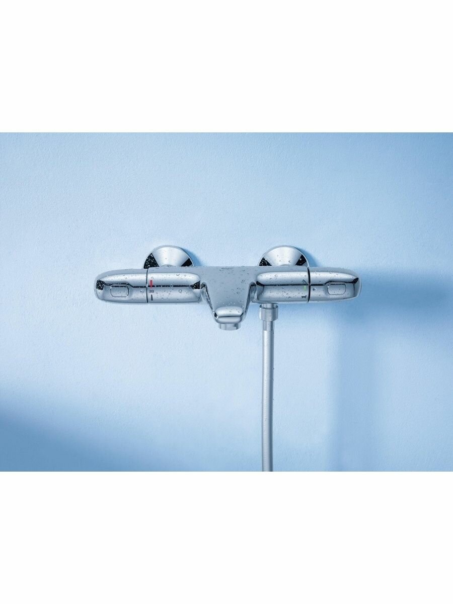Термостатический смеситель GROHE предназначен для установки на ванную с душем. Используется для наполнения ванны или подвода на душ воды заданной температуры. Благодаря максимальному ограничению температуры в 43о С, обжечься при использовании практически невозможно.