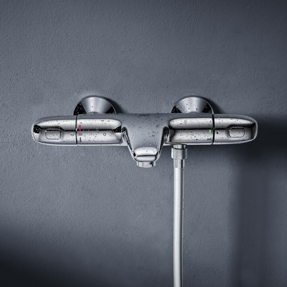 Смесители Grohtherm 1000 с термостатическим элементом интересны своими преимуществами в технологии смешивания воды и привлекательной ценой. В этом функциональном и надежном смесителе использована последняя технологическая разработка – GROHE TurboStat®. Она позволяет принимать душ с постоянной температурой воды, даже если кто нибудь еще в доме пользуется водой.