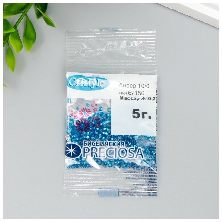 67150 10/0 Бисер Preciosa (5гр.) 10/0, синий прозрачный, упаковка 5 г (размер: 10/0=2,1-2,4мм)