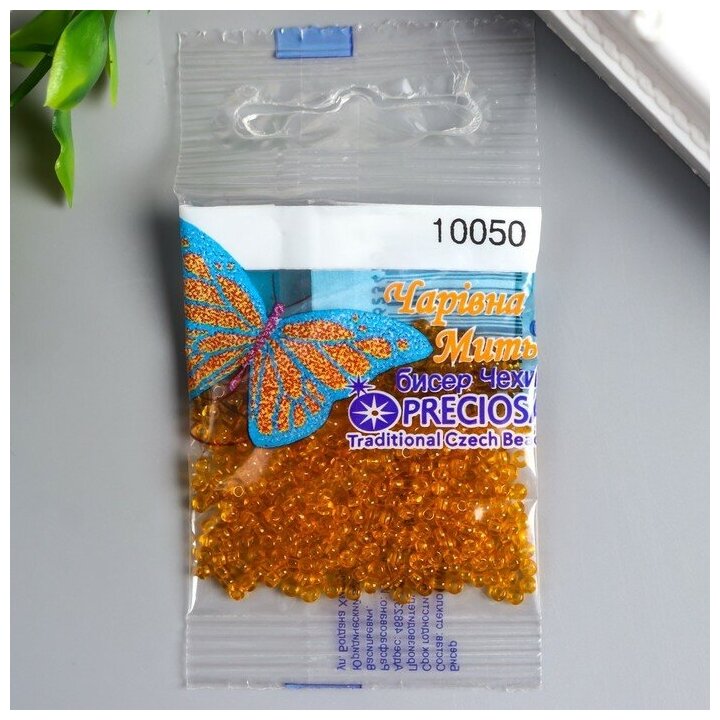 10050 10/0 Бисер Preciosa (5гр.) оранжевый прозрачный, упаковка 5 г (размер: 10/0=2,1-2,4мм)