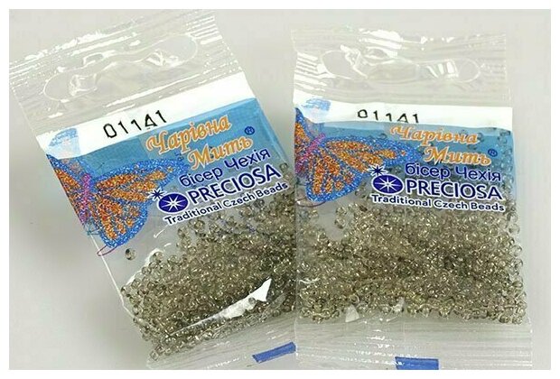01141 10/0 Бисер Preciosa (5гр.) серый прозрачный, упаковка 5 г (размер: 10/0=2,1-2,4мм)