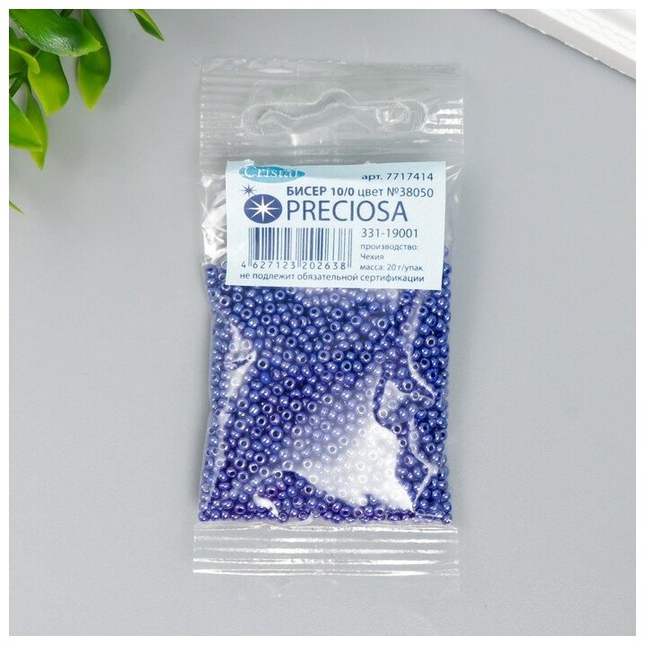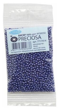 38050 Бисер непрозр. с покрытием 10/0 20гр Preciosa (размер: 10/0=2,1-2,4мм)