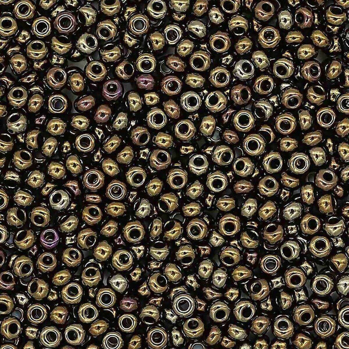 Аккуратно откалиброванный бисер из непрозрачного чешского стекла. Классическая форма. С радужными переливами благодаря специальному покрытию. Подходит для создания украшений, вышивки одежды, картин, предметов интерьера и др. Допускается стирка при температуре до 40г. C, не портится от косметики или пота. Для сохранения покрытия беречь от интенсивного трения и воздействия агессивных моющих средств. Цвет: бронзовый. Размер: 10/0 (2,3 мм). Объем: расфасован в пакетики по 20 г.