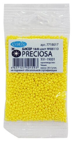 Аккуратно откалиброванный бисер классической формы из непрозрачного чешского стекла. Покрытие придает дополнительные цветовые нюансы. Подходит для создания украшений, вышивки одежды, картин, предметов интерьера и др. Допускается стирка при температуре до 40г. C. Для сохранения яркости и цвета беречь от прямых солнечных лучей, агессивных моющих средств, интенсивного трения. Цвет: желтый. Размер: 10/0 (2,3 мм). Объем: расфасован в пакетики по 20 г.