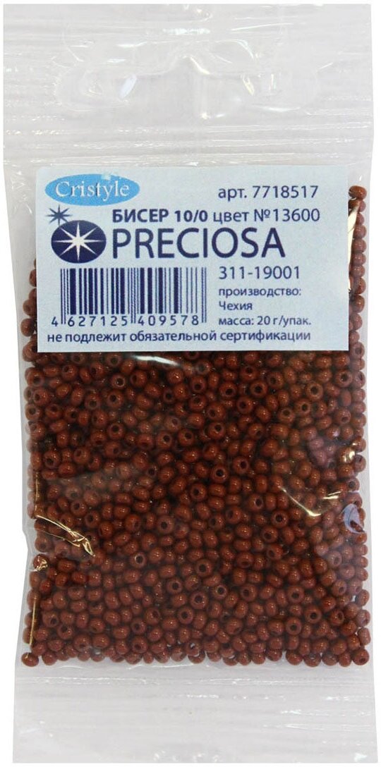 Представляем вашему вниманию бисер Preciosa классической формы из непрозрачного чешского стекла. Вот уже почти полтора столетия чешский бисер пользуется огомной популярностью у мастеров всего мира. Он ценится за высокое качество, идеальную калибровку, разнообразие расцветок, фактур и форм. Область применения бисера оганичена только фантазией мастера. Бисером расшивают одежду, головные уборы, обувь, предметы интерьера (шторы, скатерти. . . ). Из бисера делают оригинальные авторские украшения, которые впечатляют своей изысканностью. Бисер используют во флористике: в руках опытного мастера этот материал превращается в роскошные цветы, способные украсить любой интерьер. Из бисера вышивают целые картины и панно. Для сохранения блеска, изделия из бисера необходимо беречь от интенсивного трения и воздействия агессивных моющих средств, допускается стирка при температуре до 40г. C. Форма бисера: круг. Размер: 10/0 (2,3 мм). Цвет: 13600 непрозрачный коричнево-красный. Состав: стекло. Упаковка: 20 г. Страна производителя: Чехия.