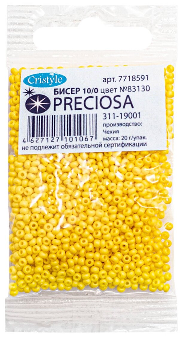 Аккуратно откалиброванный бисер классической формы из непрозрачного чешского стекла. Подходит для создания украшений, вышивки одежды, картин, предметов интерьера и др. Допускается стирка при температуре до 40г. C, не портится от косметики или пота, сохраняет цвет и яркость длительное время. Цвет: желтый. Размер: 10/0 (2,3 мм). Объем: расфасован в пакетики по 20 г.