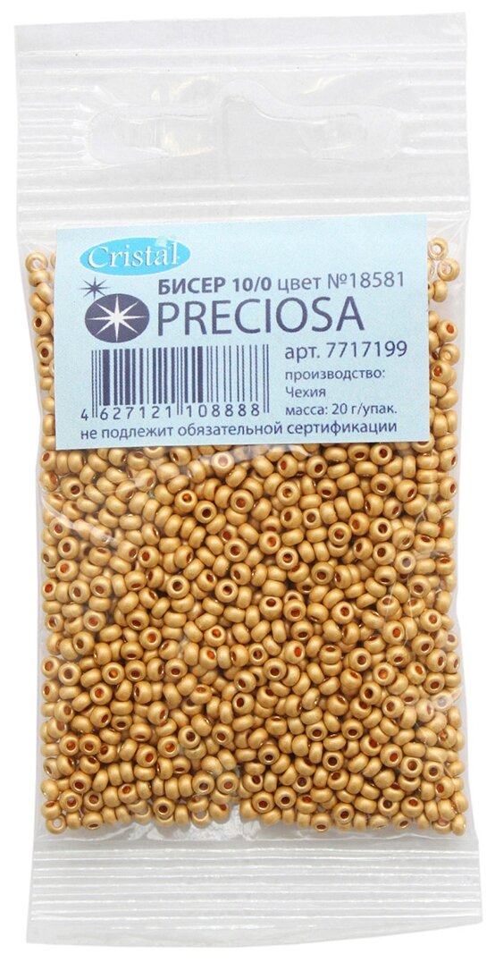 Представляем вашему вниманию бисер Preciosa классической формы из непрозрачного чешского стекла с покрытием "металлик". Вот уже почти полтора столетия чешский бисер пользуется огомной популярностью у мастеров всего мира. Он ценится за высокое качество, идеальную калибровку, разнообразие расцветок, фактур и форм. Область применения бисера оганичена только фантазией мастера. Бисером расшивают одежду, головные уборы, обувь, предметы интерьера (шторы, скатерти. . . ). Из бисера делают оригинальные авторские украшения, которые впечатляют своей изысканностью. Бисер используют во флористике: в руках опытного мастера этот материал превращается в роскошные цветы, способные украсить любой интерьер. Из бисера вышивают целые картины и панно. Для сохранения блеска, изделия из бисера необходимо беречь от интенсивного трения и воздействия агессивных моющих средств, допускается стирка при температуре до 40г. C. Форма бисера: круг. Размер: 10/0 (2,3 мм). Цвет: 18581 золотой матовый. Состав: стекло. Упаковка: 20 г. Страна производителя: Чехия.