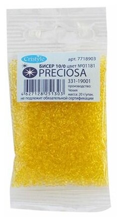 Представляем вашему вниманию бисер Preciosa сорта solgel классической формы из прозрачного чешского стекла. Вот уже почти полтора столетия чешский бисер пользуется огомной популярностью у мастеров всего мира. Он ценится за высокое качество, идеальную калибровку, разнообразие расцветок, фактур и форм. Область применения бисера оганичена только фантазией мастера. Бисером расшивают одежду, головные уборы, обувь, предметы интерьера (шторы, скатерти. . . ). Из бисера делают оригинальные авторские украшения, которые впечатляют своей изысканностью. Бисер используют во флористике: в руках опытного мастера этот материал превращается в роскошные цветы, способные украсить любой интерьер. Из бисера вышивают целые картины и панно. Для сохранения блеска, изделия из бисера необходимо беречь от интенсивного трения и воздействия агессивных моющих средств, допускается стирка при температуре до 40г. C. Форма бисера: круг. Размер: 10/0 (2,3 мм). Цвет: 01181 прозрачный желтый. Состав: стекло. Упаковка: 20 г. Страна производителя: Чехия.