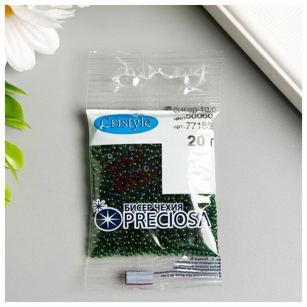 Аккуратно откалиброванный бисер классической формы из непрозрачного чешского стекла. Подходит для создания украшений, вышивки одежды, картин, предметов интерьера и др. Допускается стирка при температуре до 40г. C, не портится от косметики или пота, сохраняет цвет и яркость длительное время. Цвет: малахит. Размер: 10/0 (2,3 мм). Объем: расфасован в пакетики по 20 г.