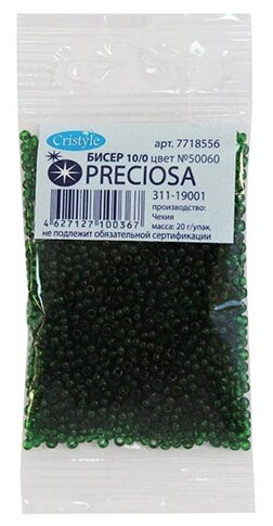 50060 Бисер прозр. 10/0 20гр Preciosa (размер: 10/0=2,1-2,4мм)