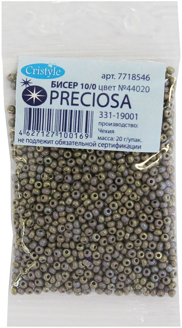 44020 Бисер непрозр. с радужным покрытием 10/0 20гр Preciosa (размер: 10/0=2,1-2,4мм)
