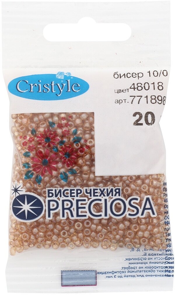 Аккуратно откалиброванный бисер классической формы из прозрачного чешского стекла. С приятным блеском благодаря цветному покрытию. Подходит для создания украшений, вышивки одежды, картин, предметов интерьера и др. Допускается стирка при температуре до 40г. C. Для сохранения блеска беречь от интенсивного трения и воздействия агессивных моющих средств. Цвет: бежевый. Размер: 10/0 (2,3 мм). Объем: расфасован в пакетики по 20 г.