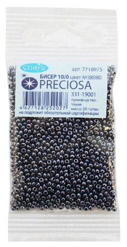 38080 Бисер непрозр. с жемчужным покрытием 10/0 20гр Preciosa (размер: 10/0=2,1-2,4мм)