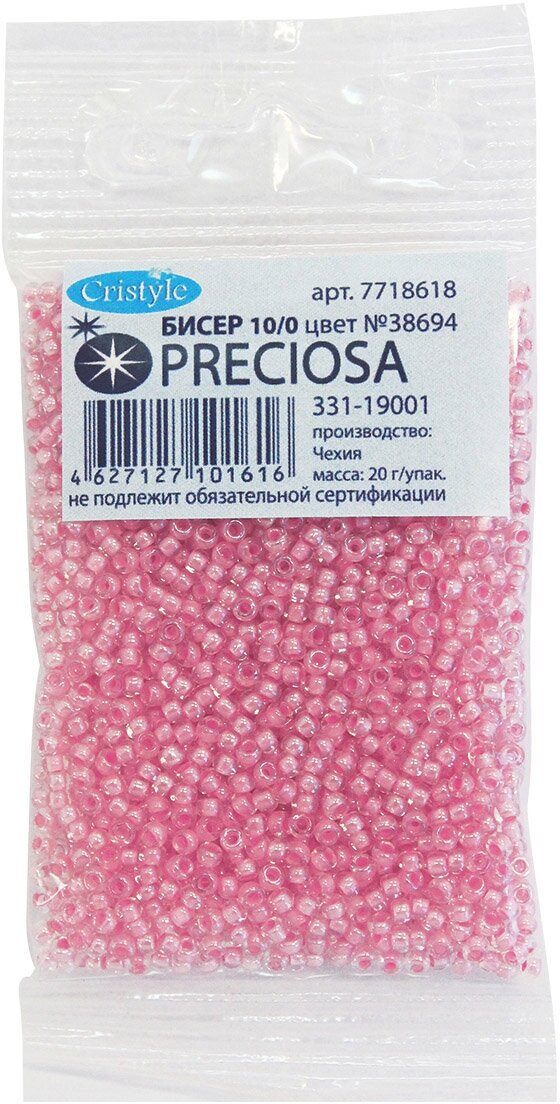 Представляем вашему вниманию бисер Preciosa классической формы из прозрачного чешского стекла. Приятный перламутровый блеск и прокрашенный центр бисера придадут Вашему творению сочности, легкости и объема. Вот уже почти полтора столетия чешский бисер пользуется огомной популярностью у мастеров всего мира. Он ценится за высокое качество, идеальную калибровку, разнообразие расцветок, фактур и форм. Область применения бисера оганичена только фантазией мастера. Бисером расшивают одежду, головные уборы, обувь, предметы интерьера (шторы, скатерти. . . ). Из бисера делают оригинальные авторские украшения, которые впечатляют своей изысканностью. Бисер используют во флористике: в руках опытного мастера этот материал превращается в роскошные цветы, способные украсить любой интерьер. Из бисера вышивают целые картины и панно. Для сохранения блеска, изделия из бисера необходимо беречь от интенсивного трения и воздействия агессивных моющих средств, допускается стирка при температуре до 40г. C. Форма бисера: круг. Размер: 10/0 (2,3 мм). Цвет: 38694 розовый. Состав: стекло. Упаковка: 20 г. Страна производителя: Чехия.