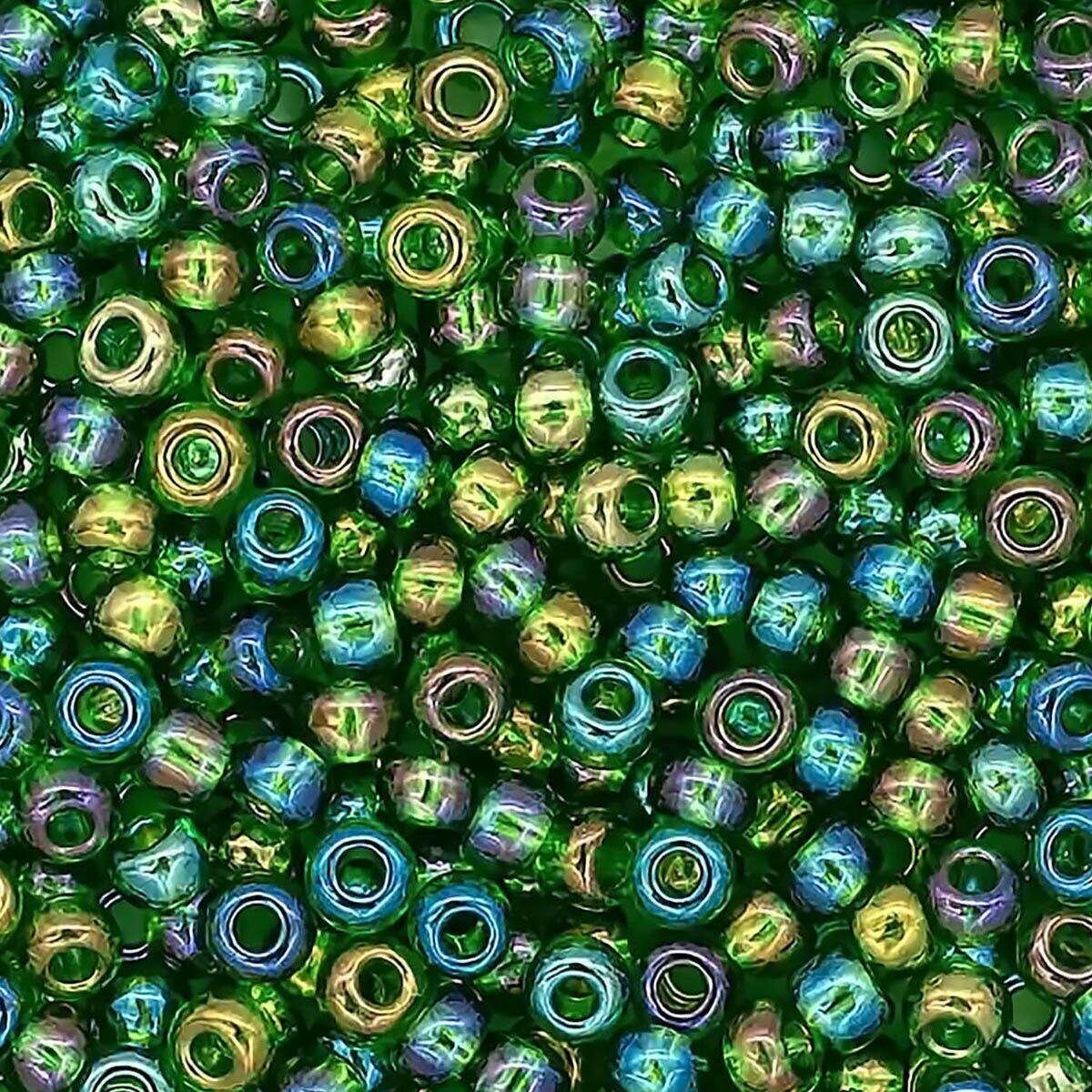 Аккуратно откалиброванный бисер из прозрачного чешского стекла. Классическая форма. С радужными переливами благодаря специальному покрытию. Подходит для создания украшений, вышивки одежды, картин, предметов интерьера и др. Допускается стирка при температуре до 40г. C, не портится от косметики или пота. Для сохранения покрытия беречь от интенсивного трения и воздействия агессивных моющих средств. Цвет: зеленый. Размер: 10/0 (2,3 мм). Объем: расфасован в пакетики по 20 г.