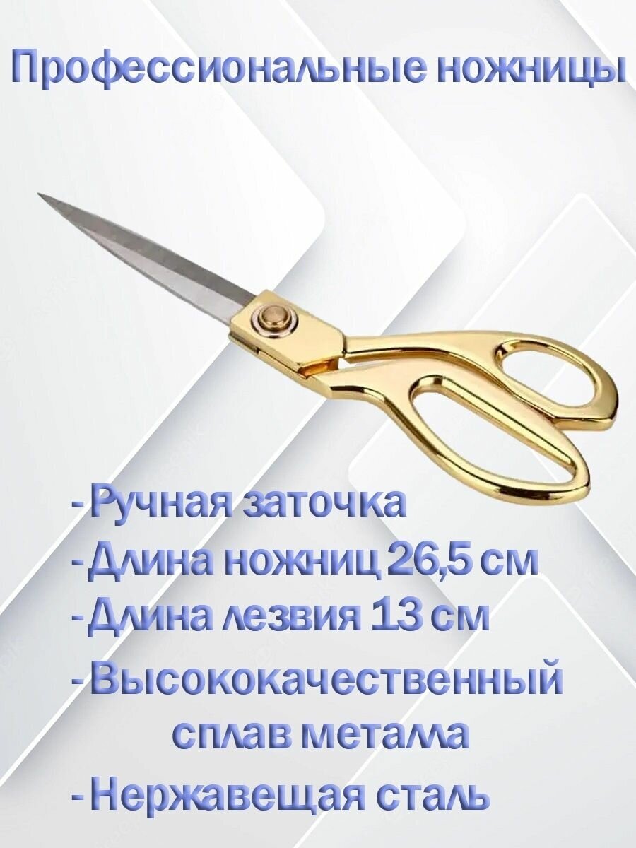 Цельнометаллические ножницы с позолоченными ручками. Подходят для работы с легкими тканями и тканями средней плотности. Отличаются большим захватом за счет величины лезвий и легким ходом.