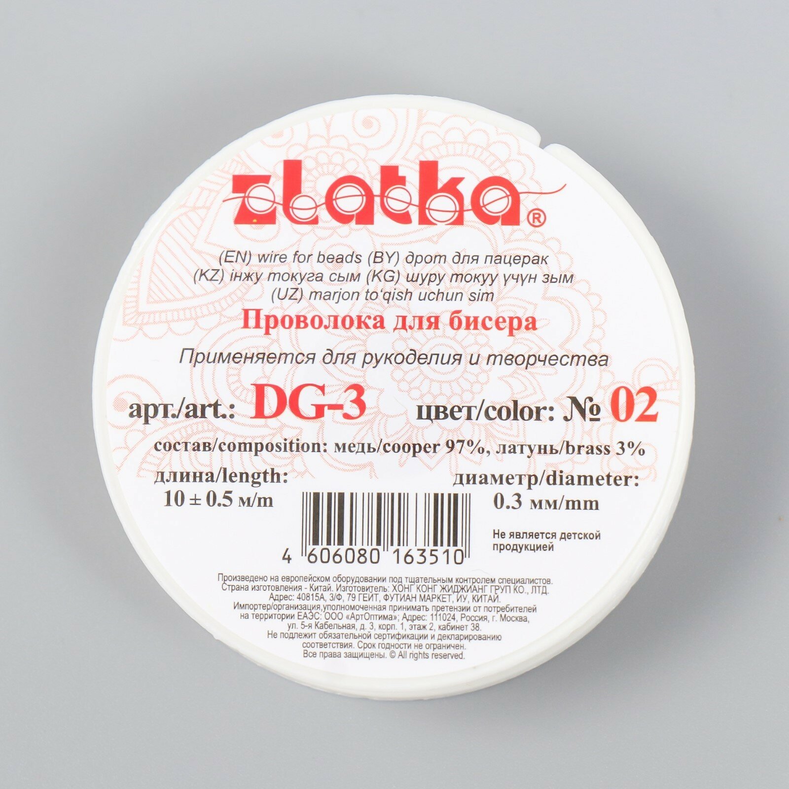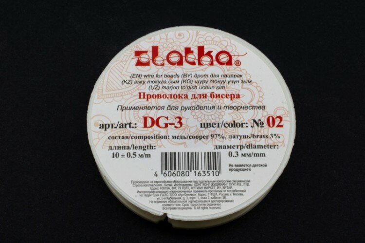 Проволока для бисероплетения. Диаметр проволоки позволяет продевать ее сквозь бисер и бусину три раза и более. Cостав 100% медь.