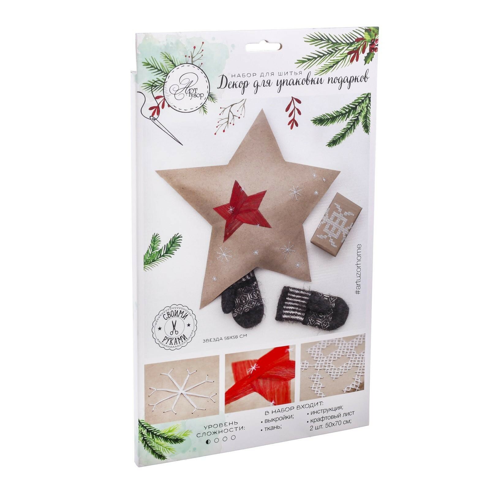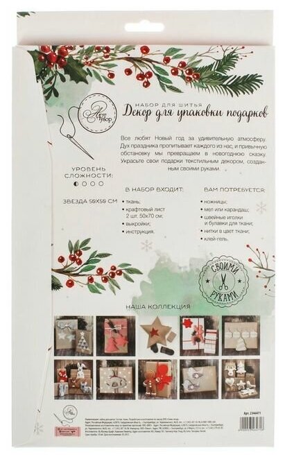 2346471 Набор для шитья. Декор для упаковки подарков "Морозный Новый Год" Арт Узор (размер: 22х14х33 см)