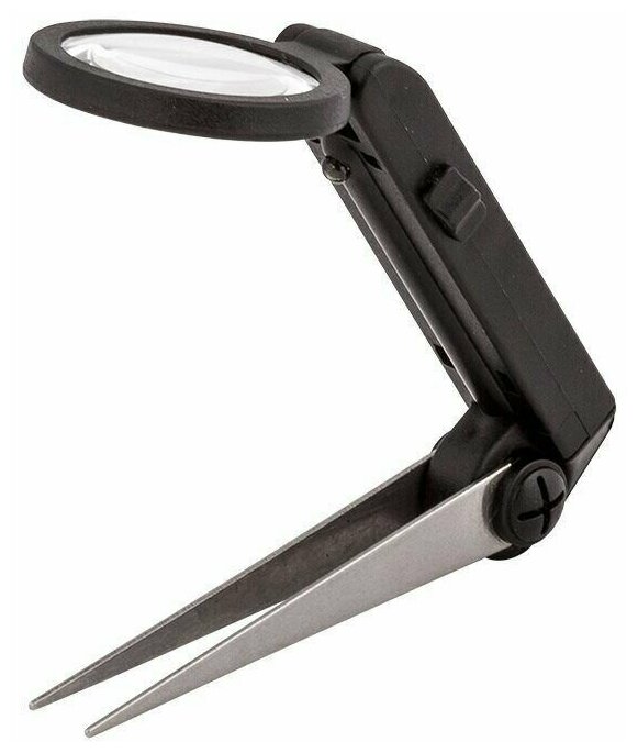 Лупа для рукоделия с пинцетом и подсветкой-3 батареи типа 3LR927. Удобно использовать для рукоделия, творчества, в изготовлении миниатюрных поделок, для чтения и многого другого. Линза d 2.5см - 10-и кратное увеличение. Материал корпуса: ABS-пластик черного цвета, линза - акрил.