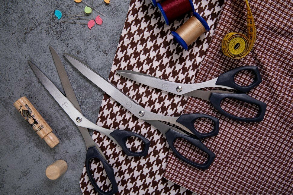 Портновские ножницы используются для раскроя ткани. Металлические с пластиковыми термостойкими ручками, которые не плавятся при соприкосновении с утюгом. Применяются для кроя плательных, костюмных групп тканей. Длина лезвия позволяет кроить мелкие детали.Ножницы изготовлены из инструментальной стали марки 30Х13. Сталь содержит хром , который придает инструменту дополнительную прочность. Кончики легко разрезают материал, не заминая край; режущие поверхности сходятся идеально. Лезвия плотно прилегают друг к другу благодоря стальному винту, закрепленному гайкой.