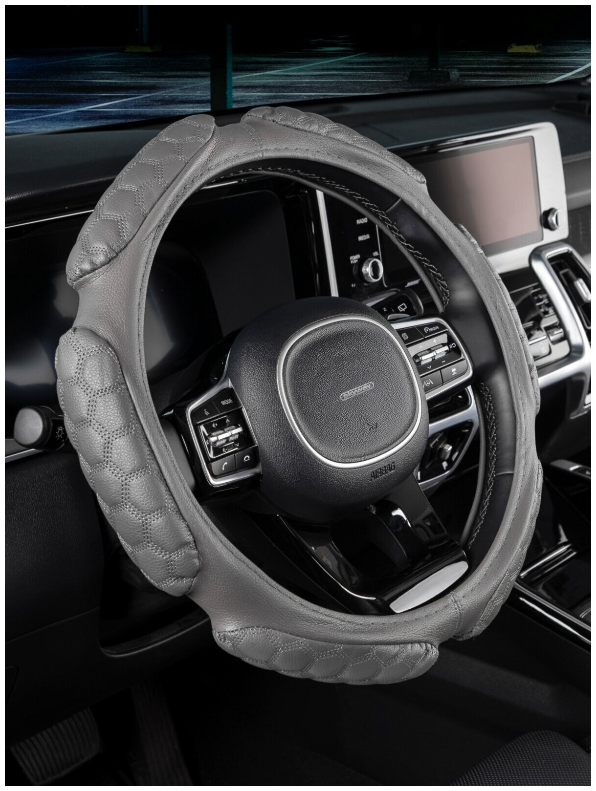 Оплетка на руль - сверхпопулярный автомобильный аксессуар. Сделана из высококачественного материала экокожа с вставками. Нейтральный бежевый цвет отлично вписывается в любой интерьер. Стильный дизайн выгодно подчеркнет хороший вкус автовладельца и его индивидуальность. Оплетка на руль Sponge turtle размера «M» подходит на 90% отечественных и зарубежных автомобилей. Чехол на руль автомобиля подойдет для Тойота, Гранта, Ларгус, Приора и многих других. На руль оплетка устанавливается легко, не требует долгих манипуляций, достаточно минимума усилий и предварительного нагрева для более легкого надевания. Поэтому справится даже хрупкая девушка.Внимание! Важно ознакомиться с последовательностью натягивания оплетки (см. слайд). Нагреть оплетку можно обычным феном, на солнце или горячим воздухом в машине.Тянется при установке, при этом отлично держит форму и плотно прилегает к рулю, повторяя его рельеф и изгибы. Вот почему чехол на руль автомобиля универсальный. Преимущества: износостойкая, без запаха, устойчива к царапинам и порезам.Чехол на руль с отменными рабочими характеристиками: скрывает имеющиеся потертости и царапины, уберегает от появления новых. Оплетка на руль не перегревается летом от солнечных лучей и не обжигает руки, а зимой не дубеет на морозе, не растрескивается, материал оплетки очень приятный на ощупь.За счет красивого внешнего вида чехол на руль автомобиля хорош как подарок девушке, как подарок мужчине в машину.Противоскользящий материал ПВХ с внутренней стороны гарантирует - оплетка не будет смещаться по ободу колеса, обеспечит крепкое сцепление с его поверхностью, что критично важно во время вращения руля.