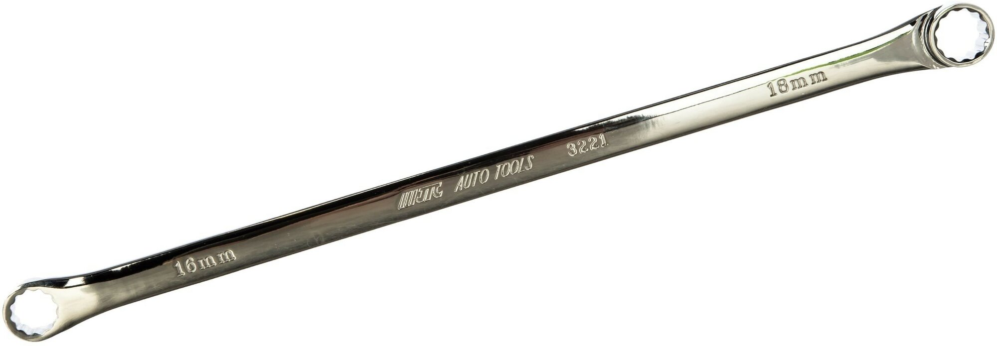Накидной двусторонний ключ JTC JTC- выполнен из высокопрочной стали с хромовым покрытием. Ключ имеет загнутые концы, что обеспечивает надежный захват при работе с крепежными соединениями.