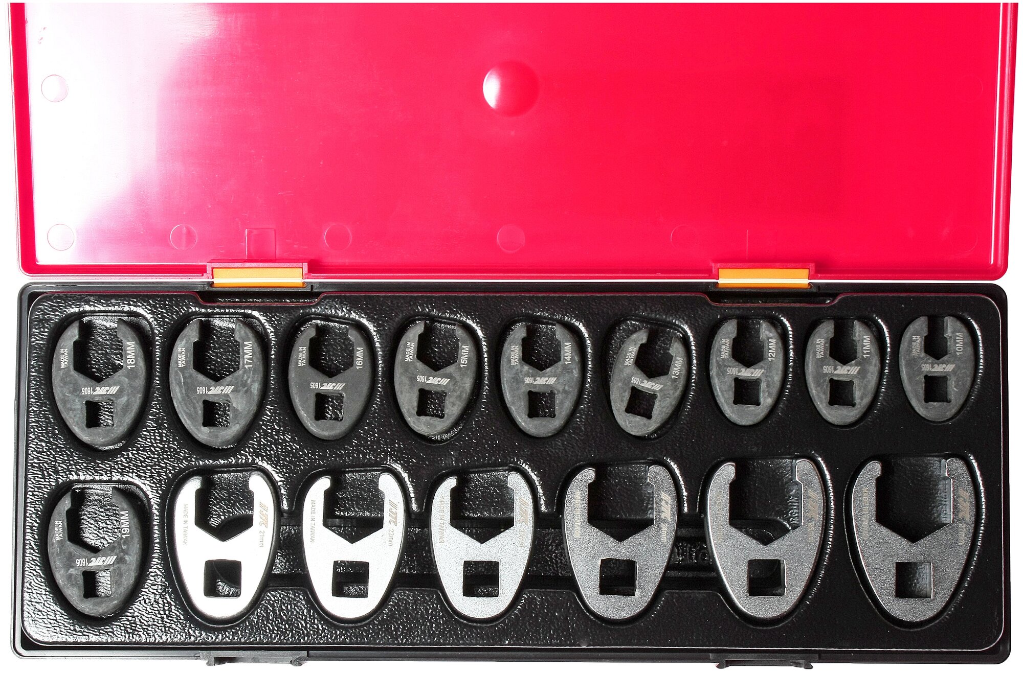 Артикулы JTC-160510-160519: 3/8 ключ разрезной односторонний - 10 мм, 11 мм, 12 мм, 13 мм, 14 мм, 15 мм, 16 мм, 17 мм, 18 мм, 19 мм. - 10 шт.