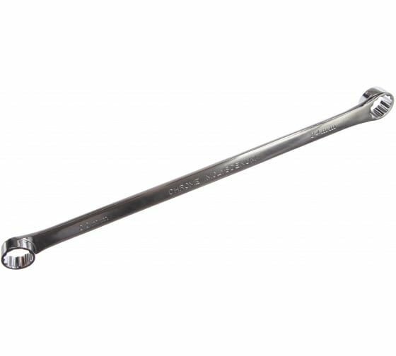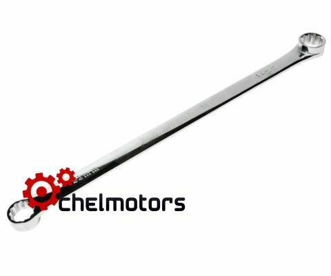 Предназначен для работы с крепёжными двенадцатигранными элементами. Материал: хром-молибденовая сталь. Благодаря специальной удлиненной конструкции инструмент удобен для применения в условиях ограниченного пространства, например, при работе с шкивами, радиаторами охлаждения и т.п. Размеры 22x24 мм. Длина 430 мм.
