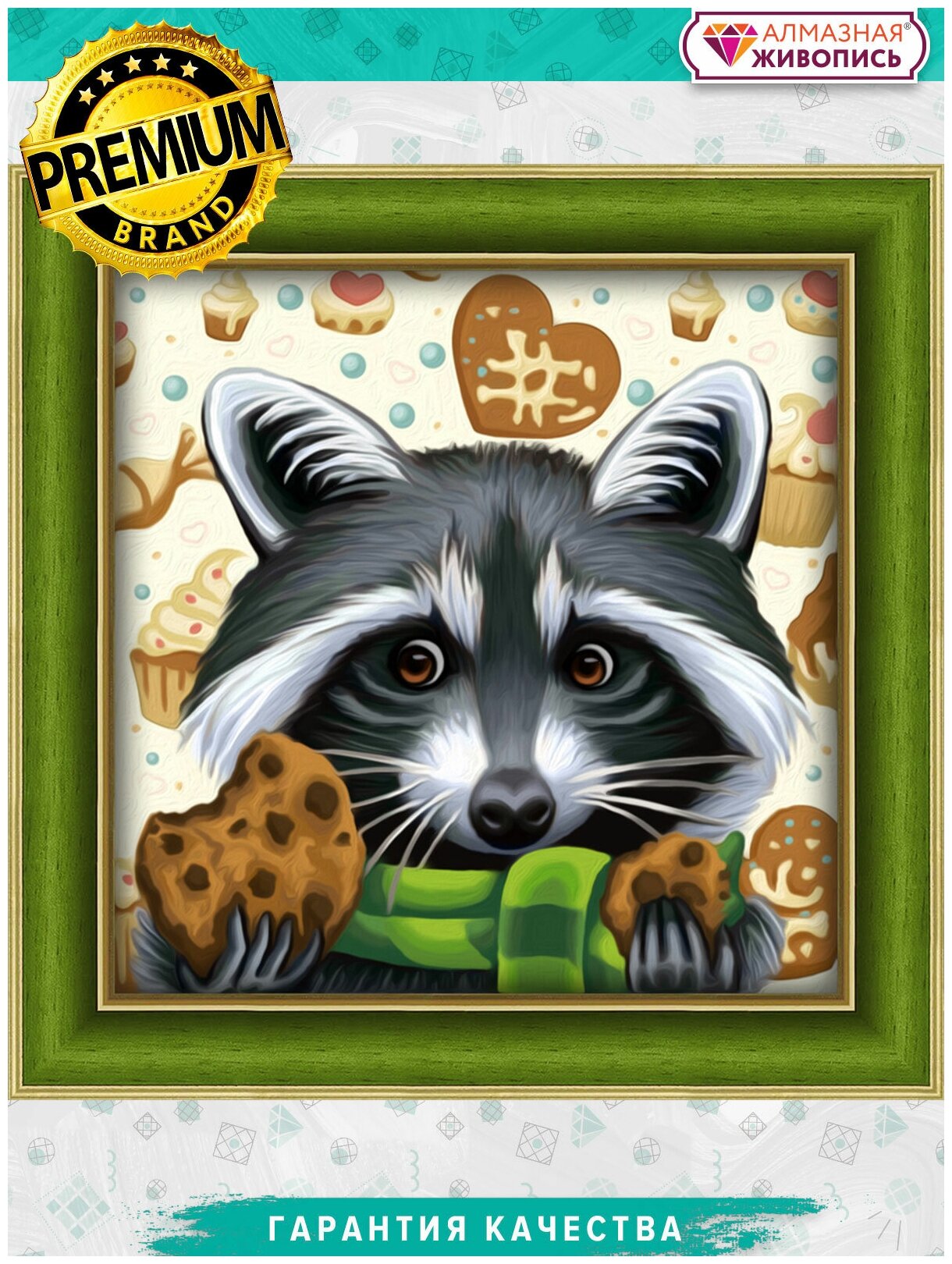Енот-сладкоежка (АЖ-1606) - картина стразами Алмазная живопись (размер: 25х25 см)