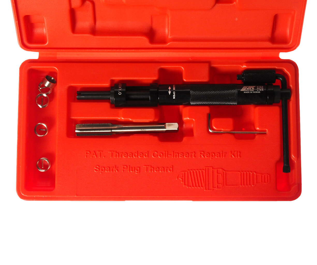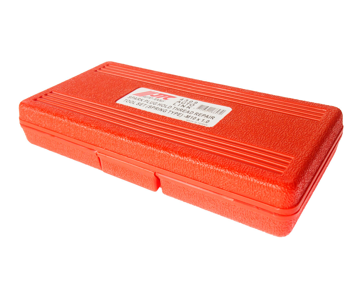 Набор инструментов для восстановления резьбы свечей зажигания (пружинная вставка М10х1.0, 5 штук) JTC имеет габаритные размеры 240х120х40 мм. Благодаря кейсу транспортировка набора осуществляется без потери комплектующихПреимущества Набор специально предназначен для реконструкции резьбы свечей зажигания В комплект входит направляющая втулка, специальные метчики и шестигранный ключ Характеристики вставок: М10х1.0 (3/8”) – 5 шт Размер: М10х1.0 Габаритные размеры: 240/120/40 мм Вес: 420 гр