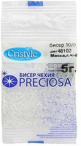 48102 10/0 Бисер Preciosa (5гр.) 10/0, прозрачный, упаковка 5 г (размер: 10/0=2,1-2,4мм)
