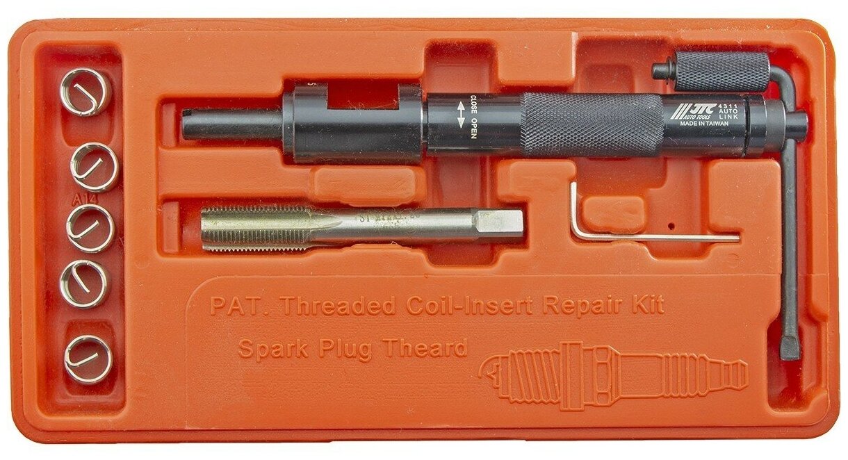 Набор JTC специально предназначен для реконструкции резьбы свечей зажигания. В комплект входит направляющая втулка, специальный метчик и шестигранный ключ. Характеристики вставок: M12x1.25 (3/4”) – 5 шт. Назначение JTC-: Ремонт резьбы свечей зажигания М12х1,25. Комплектация JTC-: • Втулка направляющая - 1 шт. • Метчик специальный - 1 шт. • Ключ шестигранный - 1 шт. • Футорка М12х1,25 - 5 шт. Кейс пластиковый. Характеристики JTC: Тип инструмента: Набор восстановления резьбы. Размер вставки: М12х1.25 (3/4”). Упаковка: Кейс пластиковый. Габаритные размеры: 240х120х40 мм (ДхШхВ). Вес: 470 гр.