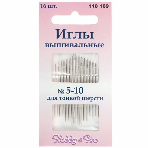 Иглы Hobby&Pro для вышивания вручную имеют вытянутое ушко равномерной толщины и заостренный конец. Такие иглы особенно удобны для вышивания технике 'гладь' деликатной тонкой шерстью – большое ушко не повреждает ворс, а тонкое острие легко проходит через материал. Ушко иглы позолочено, что облегчает вдевание нити, особенно при ослабленном зрении. При работе с иглами рекомендуется использовать наперсток, чтобы защитить пальцы от случайных повреждений. Оптимальное место хранения игл – закрытый футляр или игольница. Размер: № 5-10.Количество в упаковке: 16 шт. Под брендом Hobby&Pro производятся качественные товары для шитья и рукоделия. Ассортимент бренда постоянно обновляется, а цены приятно удивляют.