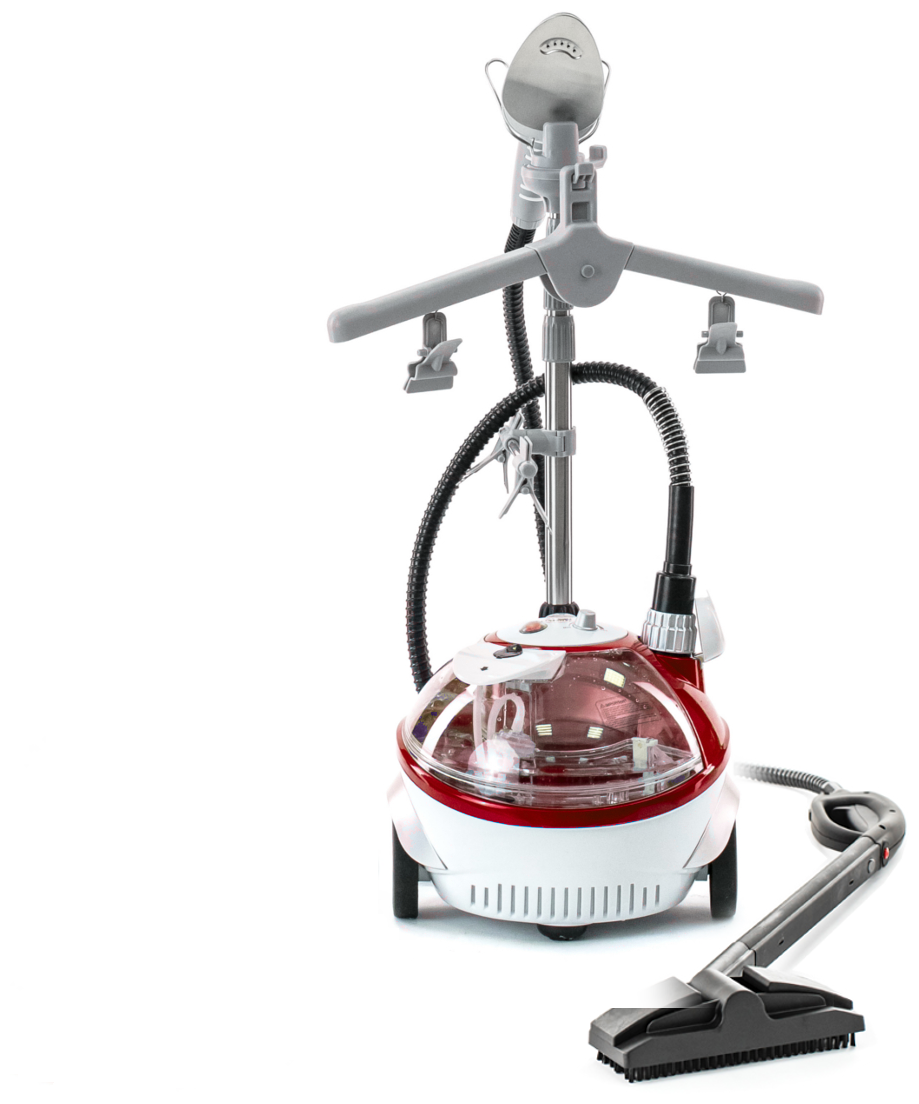 Отпариватель-пароочиститель реализует функции вертикального отпаривания одежды и паровой чистки. Обтекаемая округлая форма корпуса, колеса для передвижения в помещении, прозрачный бак для воды с функцией самозакачки.