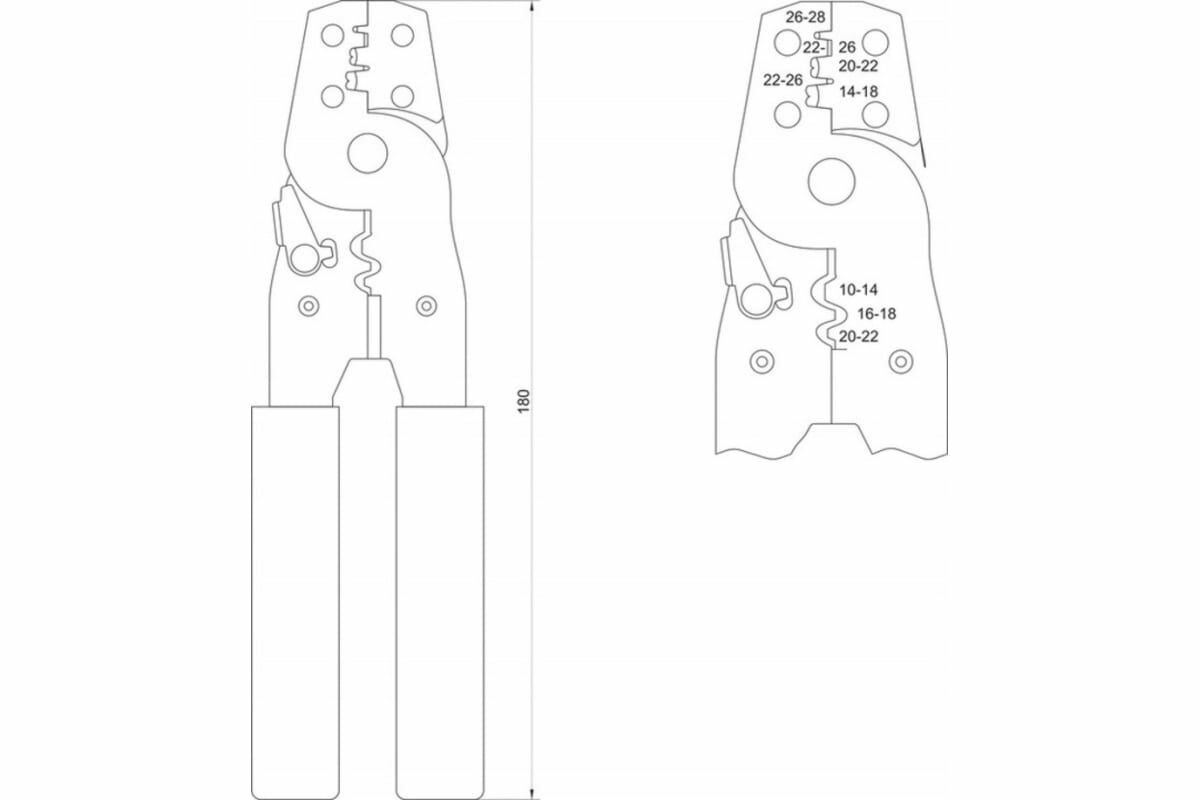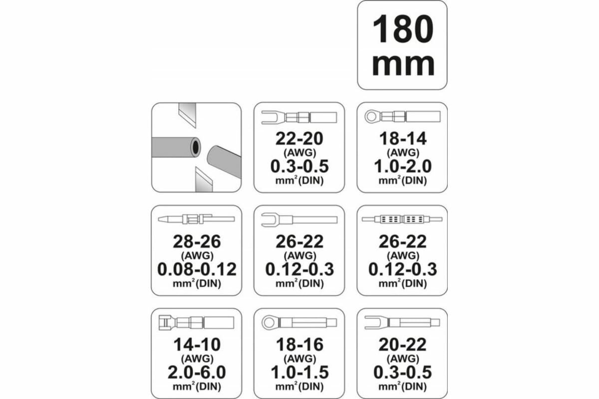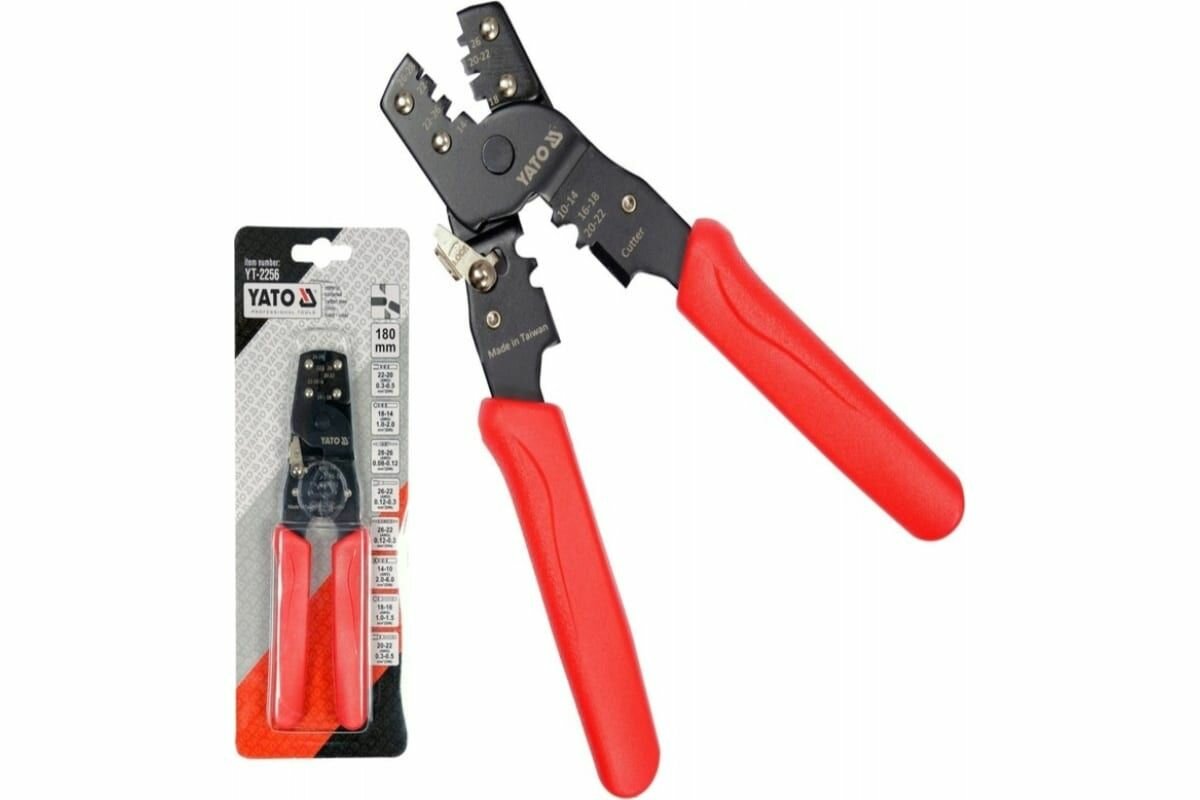 - Инструмент YATO для обжима проводов 180 мм, 0,08-6 мм2, YT-2256