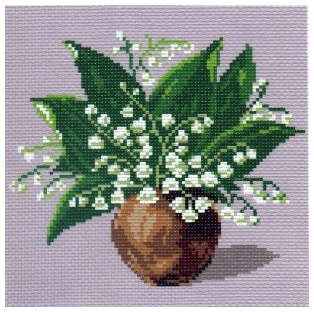 Особенности Предлагаем вам канву с заранее нанесенным рисунком. В комплекте белая хлопчатобумажная канва Аида 14 с изображением нежного букета ландышей, инструкция, шкала цветов под рисунком помогающая подобрать необходимые цвета ниток. Вышивку рекомендуется выполнять крестом, возможно включение бисера, лент, полукрест-в отдельные элементы. Размер канвы: 28х37 см. Готовой работы: 19х19 см. Количество цветов: 11. Примечание: нитки в комплект не входят.